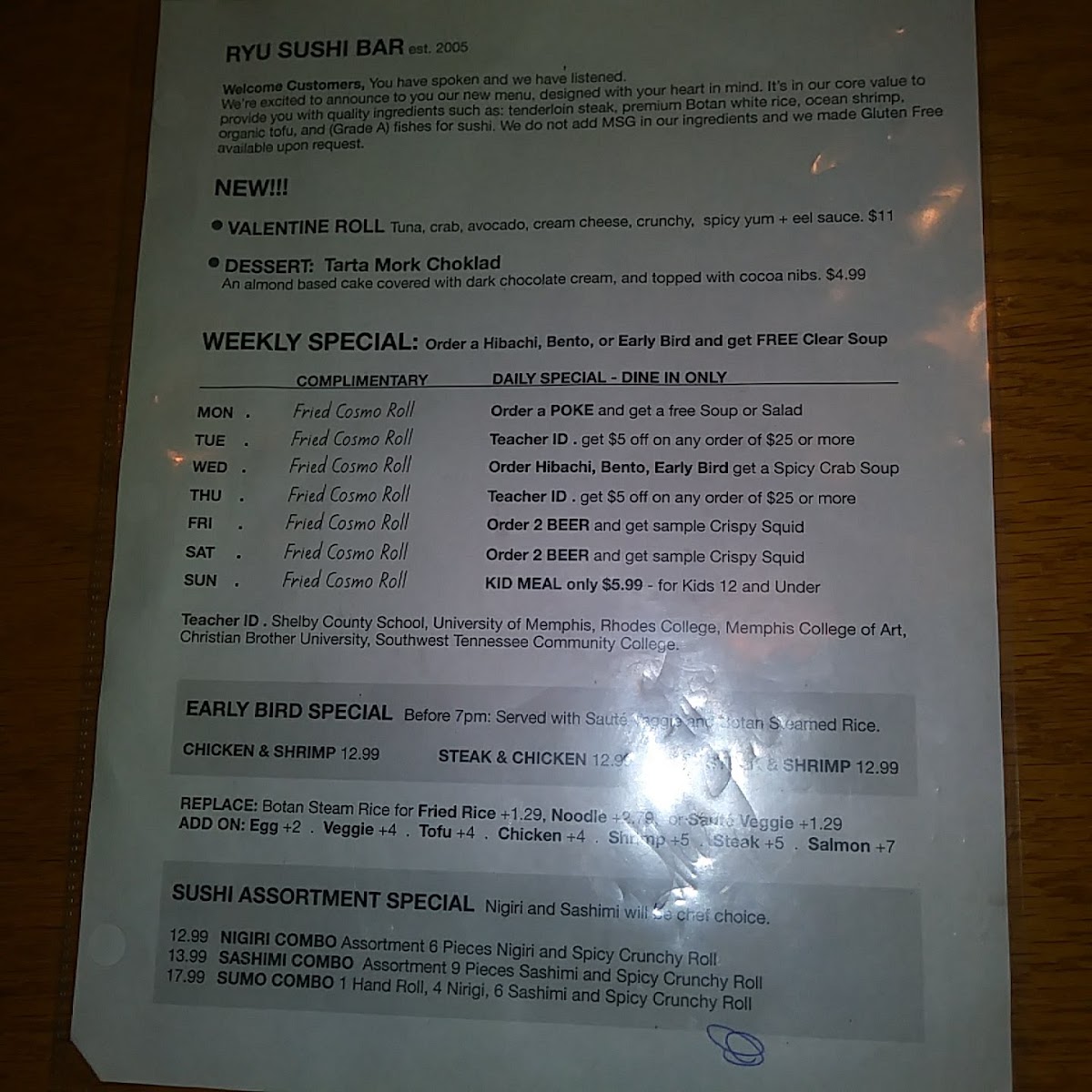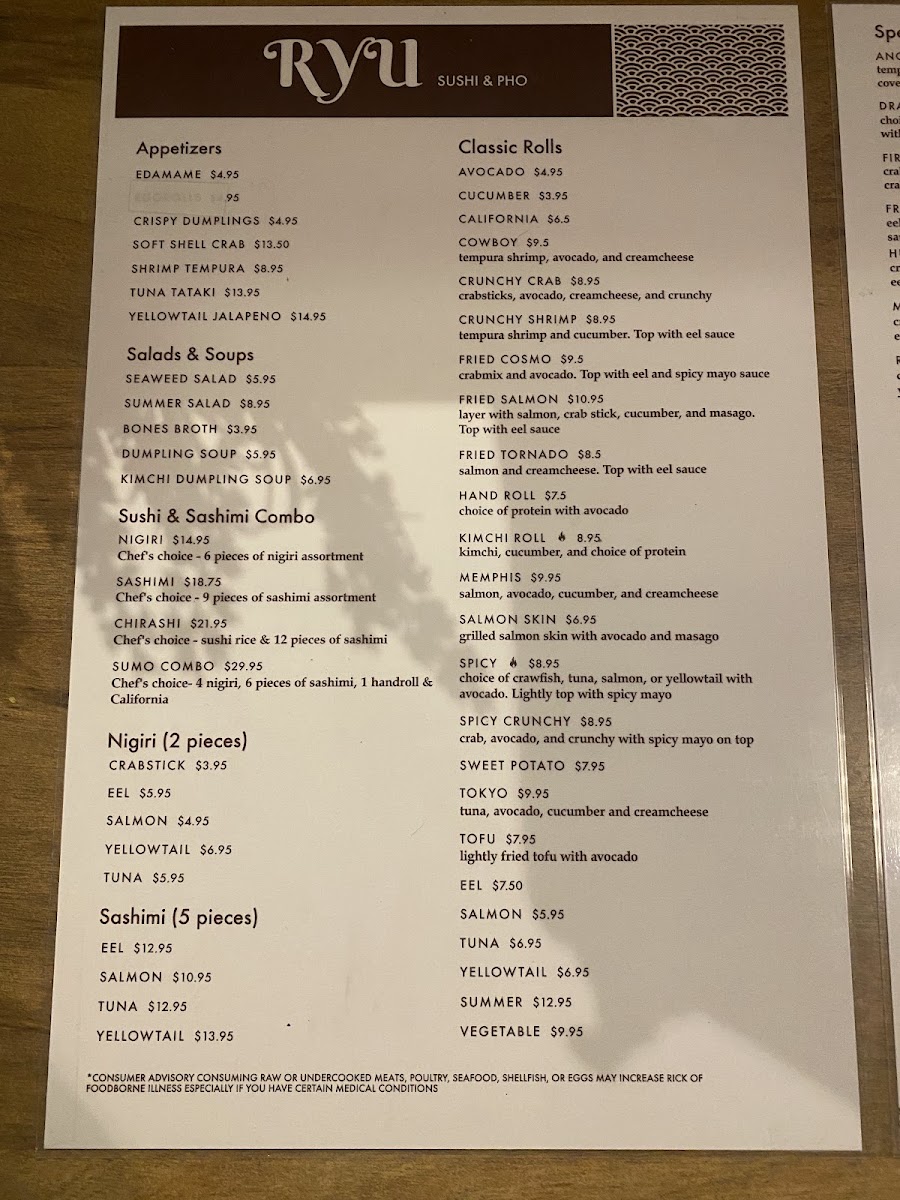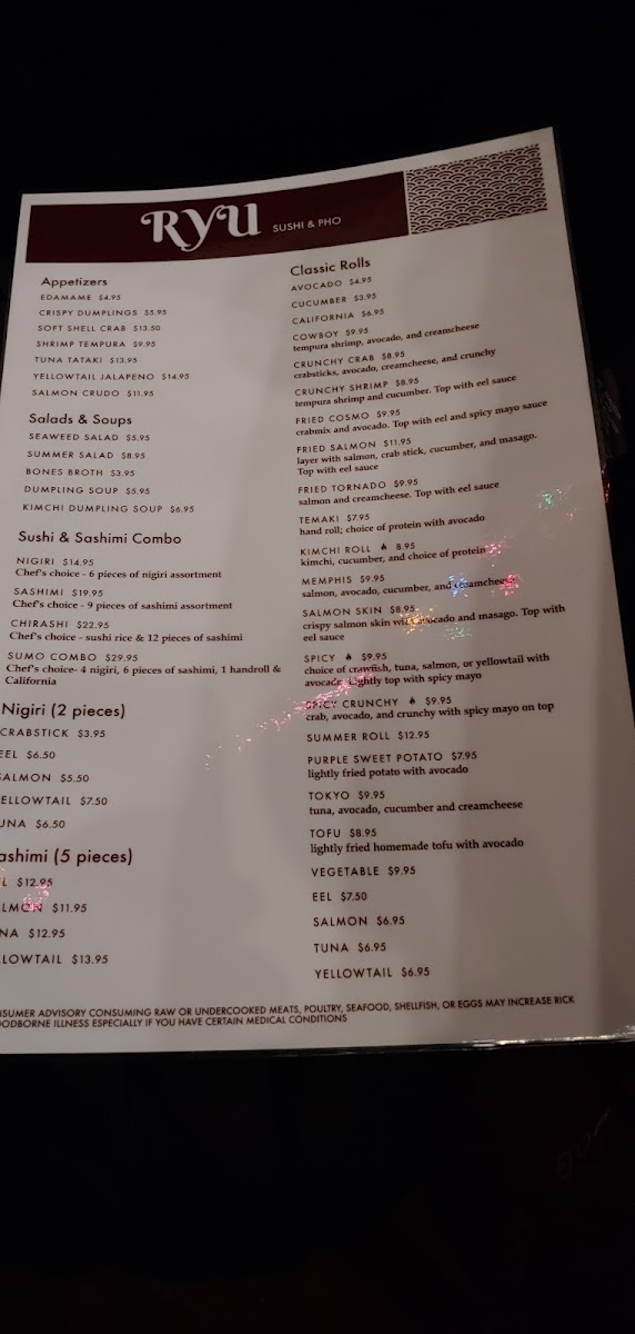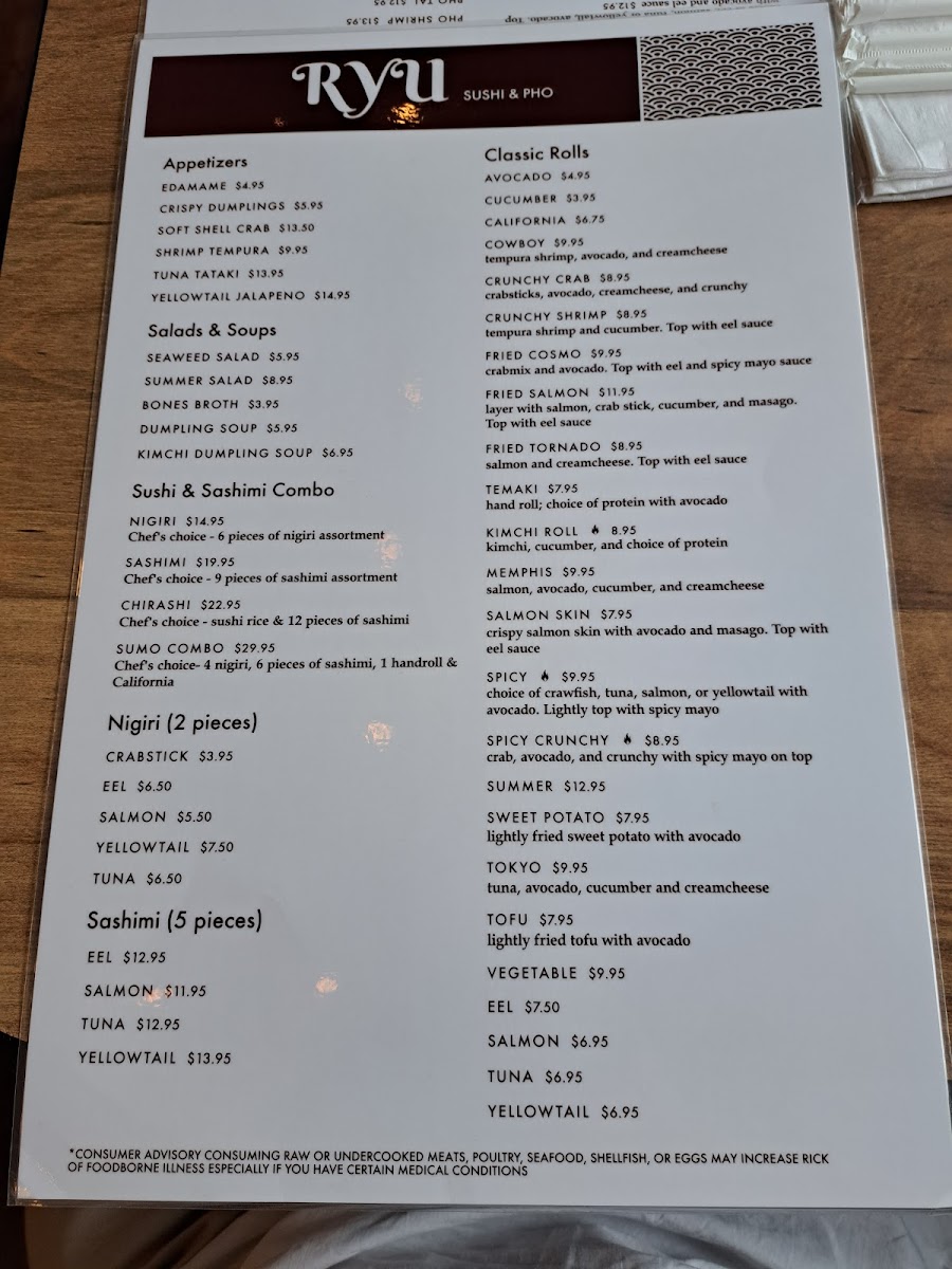 RYU - Memphis Menu