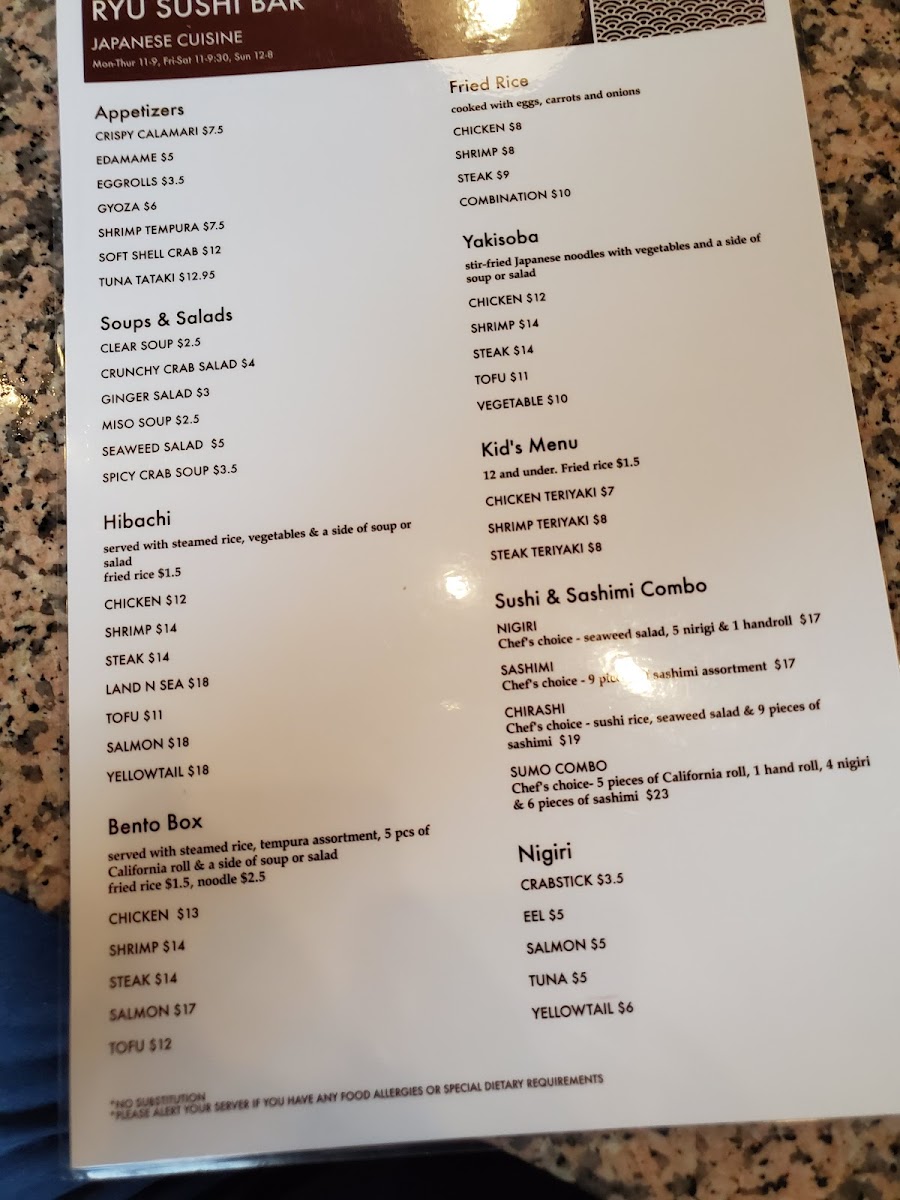 RYU’s menu offers a balanced selection of Asian dishes that feel both familiar and thoughtfully crafted. The style leans toward approachable, casual dining—where simple favorites meet satisfying comfort. You’ll find a variety of sushi rolls, perfect for sharing or enjoying as a light meal, alongside hearty fried rice dishes that bring warmth and fullness to any day.